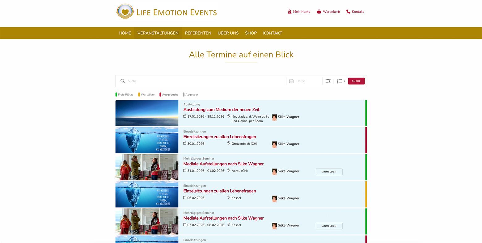 So verbindet der Relaunch ästhetische Klarheit mit funktionaler Tiefe – und macht die Angebote von Life Emotion Events digital zugänglich, erlebbar und buchbar.